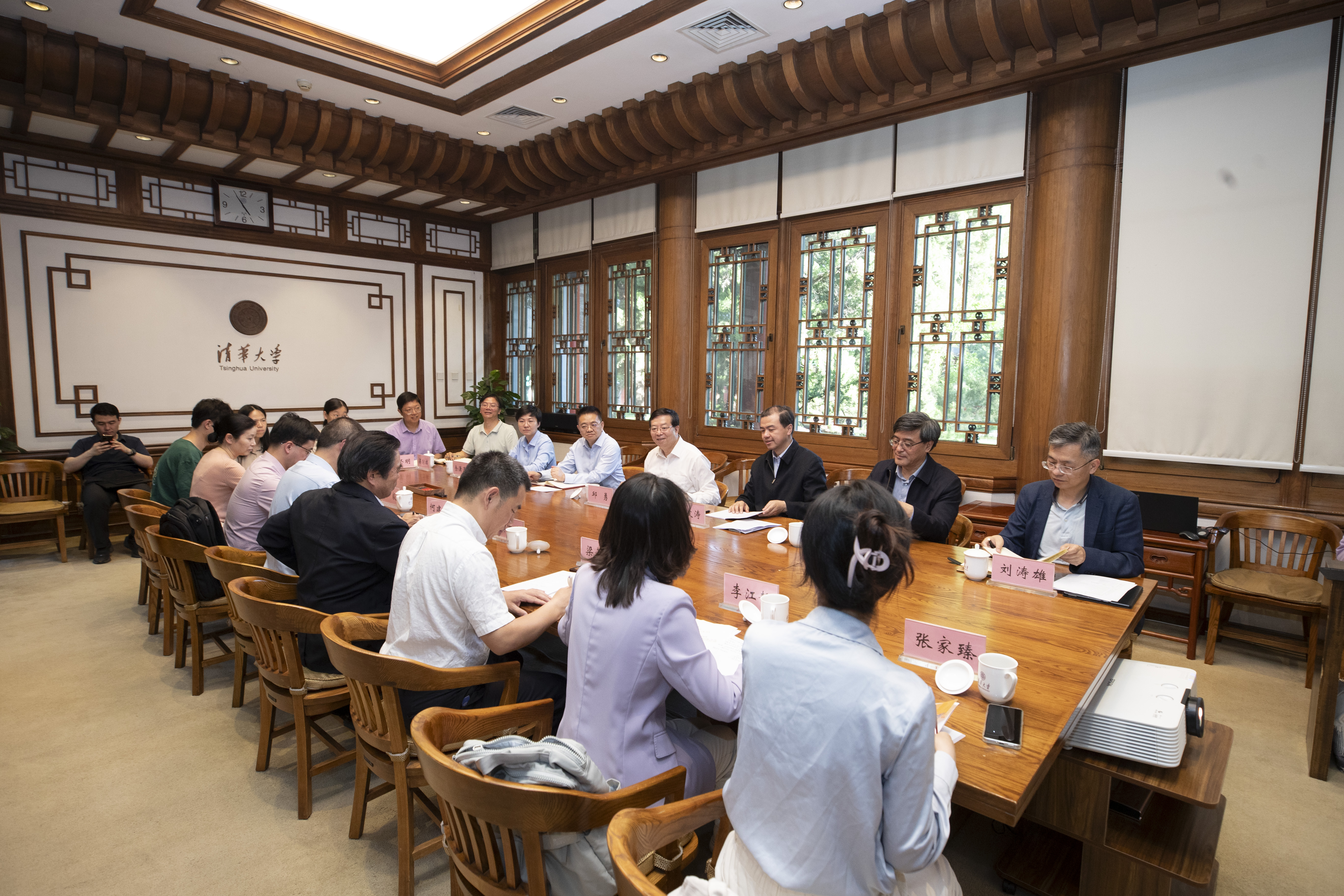 思政课教师代表,党政办、宣传部、教师工作部、教务处、研究生院、文科处、清华附中、清华附小相关负责人等参加会议。