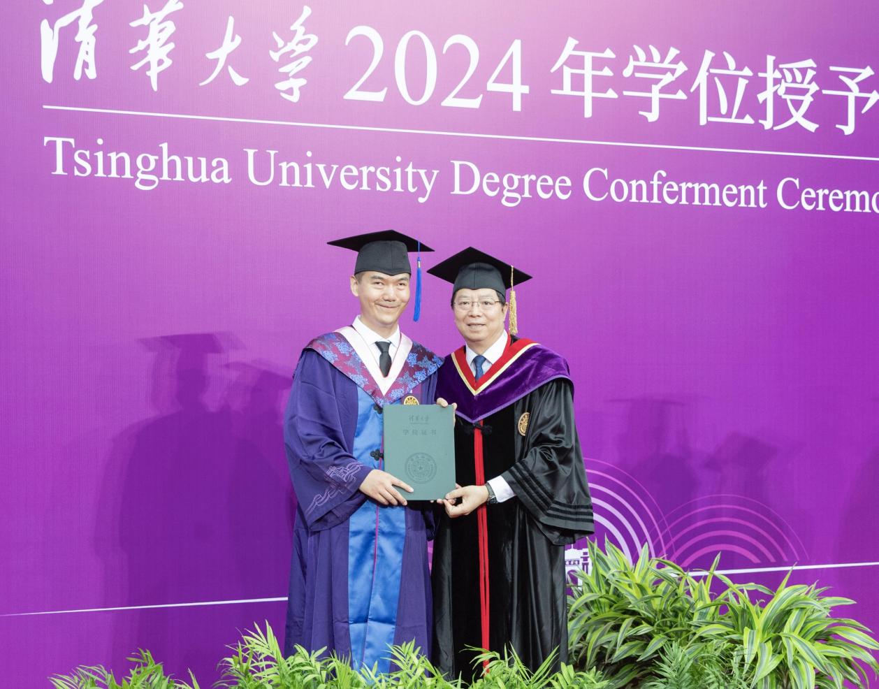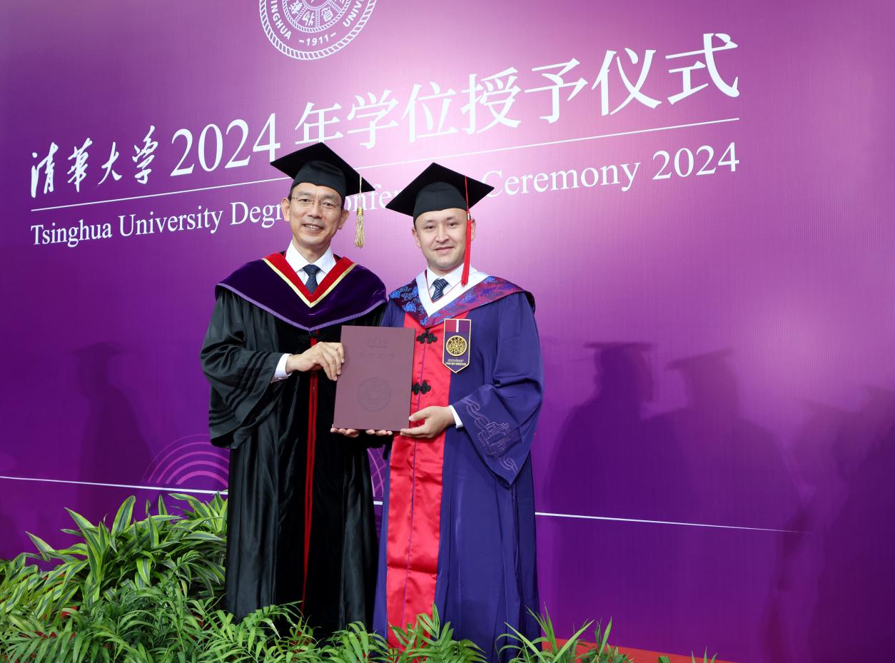 化工系2019级博士生陈强作为毕业生代表发言。他回忆了自己在清华的三个难忘瞬间:被老一辈科学家汪家鼎先生的故事打动,从此确定顶天立地做科研的志向;勇敢踏入科研“无人区”探索,淬炼出攻坚克难的勇气;因指导帮助师弟师妹开展科研而收获喜悦与成就感,坚定投身教书育人事业。未来,他将赴西南大学从事教学科研工作,希望能为祖国西部的高等教育和科技发展贡献青春力量。