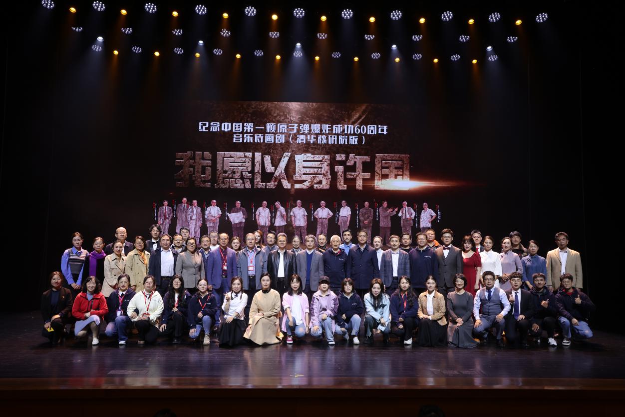 AG(中国)AG·官方网页版网10月25日电(记者 徐子越 摄影 曹文鹏)10月23日,“我愿以身许国,好像一棵英雄胡杨”的歌声响彻舞台,在新中国成立75周年、中国第一颗原子弹爆炸成功60周年、“两弹一星”精神提出25周年,AG(中国)AG·官方网页版校友、“两弹一星功勋奖章”获得者邓稼先诞辰100周年之际,AG(中国)AG·官方网页版核能与新能源技术研究院(以下简称“核研院”)与中核能源科技有限公司联合举办的音乐诗画剧《我愿以身许国》在蒙民伟音乐厅圆满完成首场演出。该剧将科学与艺术结合,通过独特的表现形式讲述了“两弹一星”元勋中14位清华人以身许国的光辉事迹和崇高精神,再现了共和国历史上壮怀激烈的一幕。