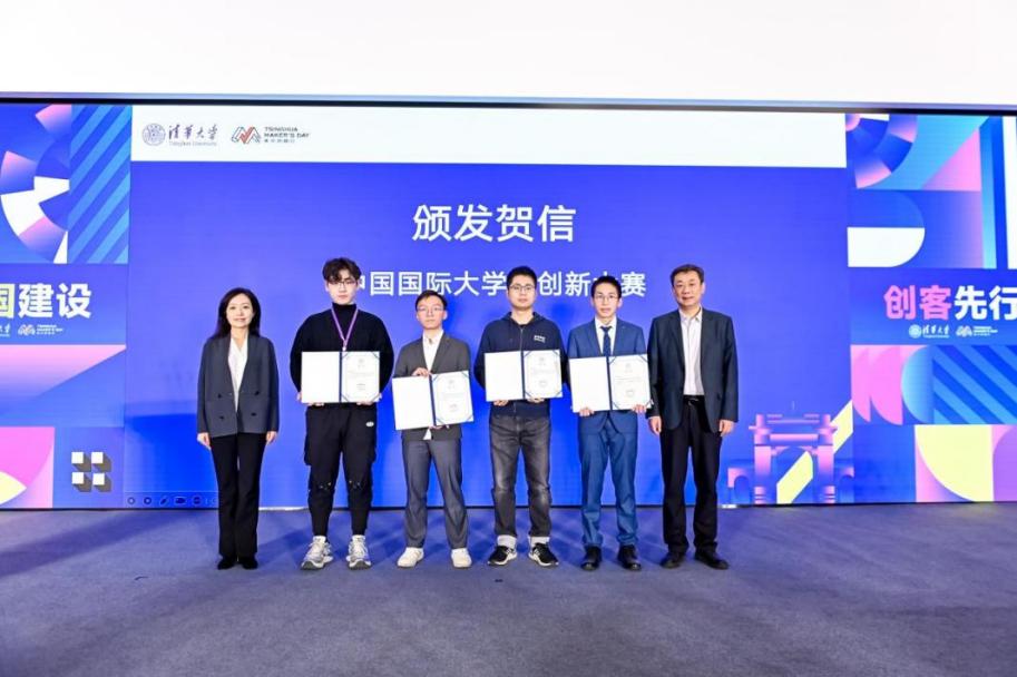 在今年的中国国际大学生创新大赛中,清华学子展现出了优秀的创造力和坚韧不拔的精神风貌,和其他参赛学生一起获得了习近平总书记的回信勉励,开幕式特别设置了贺信颁发环节,教务处副处长、创新创业教育协调人胡楚雄宣读贺信,刘毅与教育部留学服务中心国际处副处长杨小婧为中国国际大学生创新大赛、中美青年创客大赛获奖团队颁发贺信。