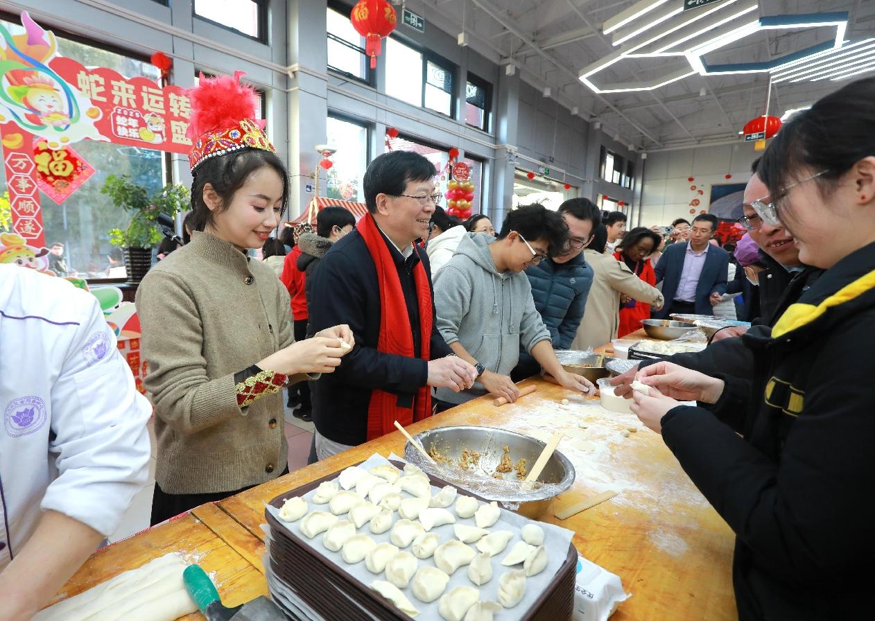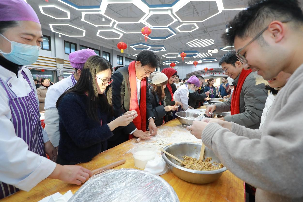 在活动现场,“中国红”的元素随处可见,营造起了温馨热烈的过年氛围。校党委书记邱勇、校长李路明与现场师生亲切交流,和大家一起包饺子、制作元宵,并为大家送上新春的美好祝福。
