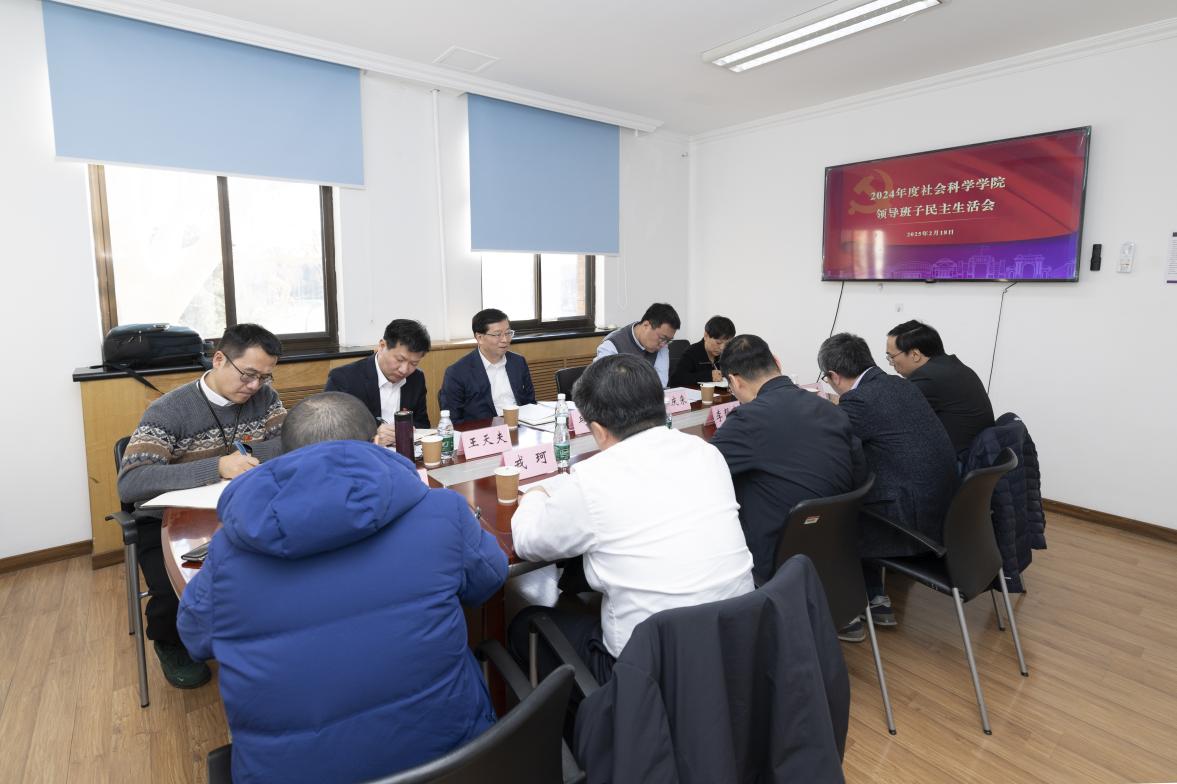 社科学院领导班子全体成员参会,校党委组织部相关负责人列席。