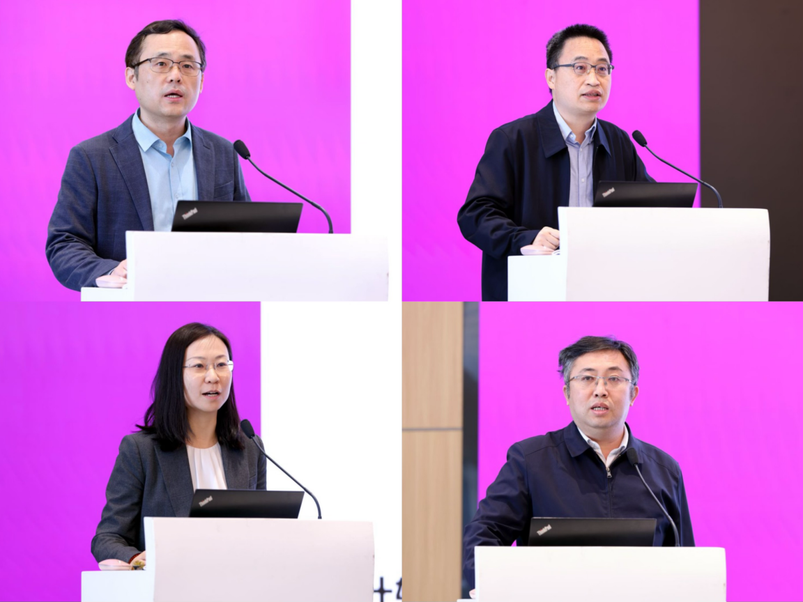 王亚愚介绍AI赋能学校学科建设情况,段文晖、胥蕊娜、吕阳成汇报院系AI赋能情况(从左至右,从上至下)