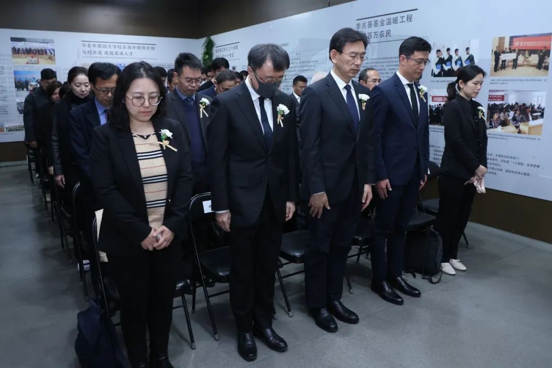 最后,清华师生及来宾向李兆基先生的遗像敬献鲜花并鞠躬致敬,表达对李兆基先生的沉痛悼念和绵长追忆。