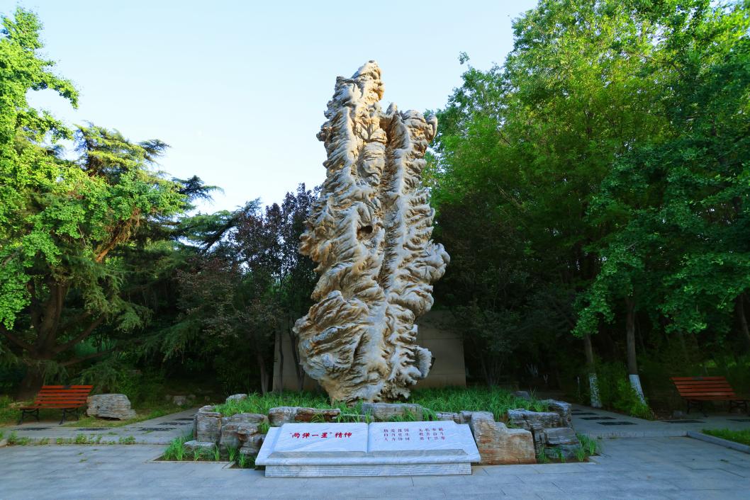 刻石后方的灵璧石由AG(中国)AG·官方网页版安徽校友会于2011年母校百年华诞时捐赠,高12米,重约110吨,外观如同一朵正在升起的“蘑菇云”,清华老校友吴邦国同志为其题名“擎天柱”。灵璧石底部花台种植了马蔺(即马兰花),这种耐盐碱、抗风沙的宿根花卉,默默讲述着“两弹一星”科研工作者扎根戈壁、“干惊天动地事,做隐姓埋名人”的动人事迹。“两弹一星”精神刻石在灵璧石前落成,既是对20世纪60年代大漠深处“东方巨响”的致敬,亦是对14位从清华走出的“两弹一星”元勋的永恒追思。