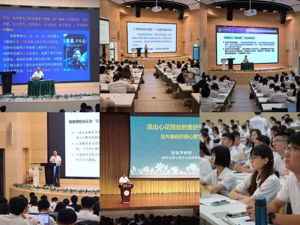 成才报告环节,校党委原副书记胡显章、校纪委副书记黄学永、校务委员会副主任史宗恺、校党委研究生工作部部长梁君健、心理系积极心理学研究中心主任彭凯平分别以“清华的发展与文化”“党的纪律与作风建设”“清华的体育精神”“清华的社工传统与作风要求”“反内卷的积极心理学”为题作分享交流。