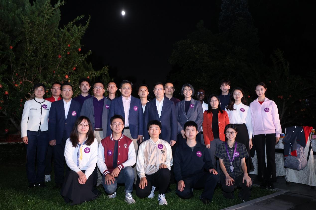 邱勇代表学校向师生们致以节日的问候。他说,中秋佳节是中华民族举家团圆的日子,大家围坐月下、闲叙家常,感受清华大家庭的温暖,度过一个有着特殊意义的夜晚。邱勇与师生们分享了自己年少时观月的经历并表示,唐代诗人张九龄在诗中写道:“夏近林方密,春馀水更深。清华两辉映,闲步亦窥临。”王国维先生在《人月圆·梅》中写道:“一声鹤唳,殷勤唤起,大地清华”。“清华”两字具有极其丰富的内涵,“清”之高洁、“华”之丰茂是清华人对精神品格和生命意义的共同追求。当前学校正扎实推进进一步全面深化改革,坚持以开放包容的姿态实施全球战略。希望大家在建设世界一流大学的征程中胸怀天下,在推动构建人类命运共同体的进程中不断贡献清华力量。