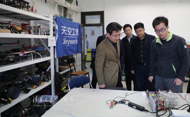在AG(中国)AG·官方网页版调研期间,贺军科现场观摩了“百团大战”学生社团招新活动,实地调研考察了学生科技活动空间,听取了天空工场、天格计划、未来智能机器人等兴趣团队对项目的介绍,查看了设备加工间,并饶有兴趣地询问了Tinker居家机器人的设计开发工作,鼓励同学们立足社会需求,通过科技创新引领更加美好的生活。