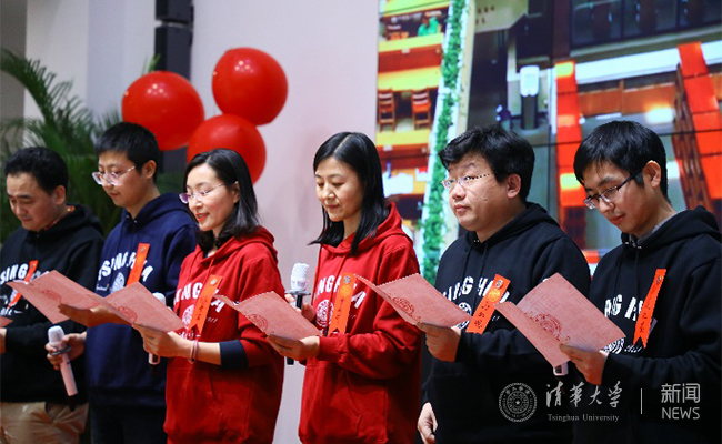 在演出环节,首届创新领军工程博士们采取诗朗诵、歌曲串烧等形式,迎接2019年的到来。诗朗诵《祖国颂》《如果没有李白》,歌曲《我和我的祖国》《成都(清华版)》等节目,诉说了清华人对祖国的无限热忱与依恋,表达了同学们在清华相识、相伴、相惜之情。