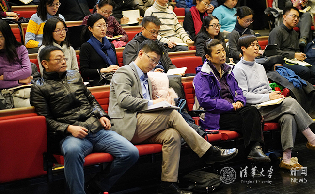 荷声讲坛现场与会教职工认真倾听