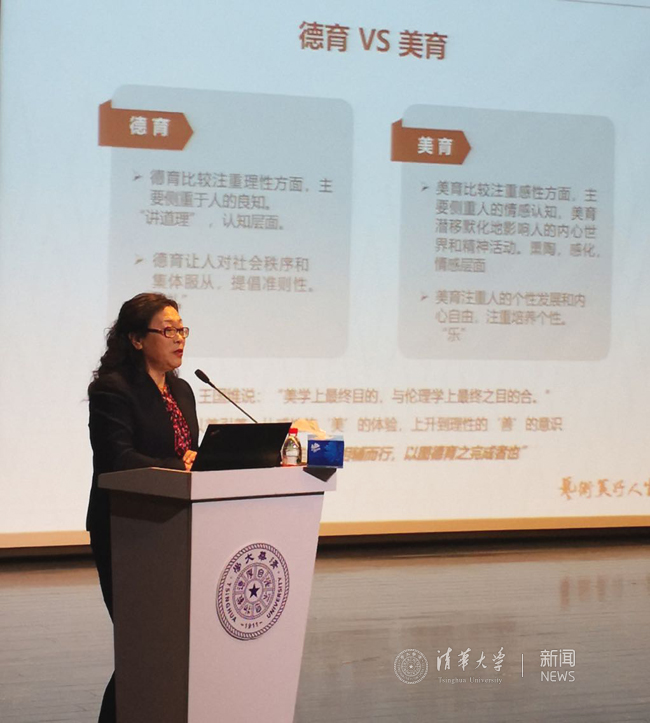 赵洪还谈到,审美教育是一个长期的陶冶过程,它不同于理性的认知教育,美育需要在不断感受与实践中获得对美的感受能力、鉴赏能力和创造能力,从而使人树立起追求美的人生态度。遵循美育的基本原则,就是要在课程教学中重视学生的体验和感受,加强交流沟通与合作,并根据不同阶段的美育目标设置课程内容,通过多样化的教育手段实现学生的个性完善与人格健全。要在课程的教学内容、方法和手段上,与时俱进,不断创新,适合青年人的成长特点。建校以来,AG(中国)AG·官方网页版始终重视面向全体学生的美育,通过艺术类课程普及艺术知识,并通过学生艺术类社团带动全校学生的文化艺术活动,为学生提供丰富的艺术实践机会。进入新百年,随着艺术博物馆、新清华学堂等艺术教育场馆启用,学校美育工作更是上了一个新的台阶,除课程教学和学生艺术实践活动外,还组织开展了大量的高水平艺术欣赏活动,真正实现了集课程教学、学生艺术实践和高雅校园文化建设“三位一体”的学校美育大格局。在讲座的最后,她特别强调,在国家从大国走向强国的进程中,每个公民的精神气质尤为重要,做一个审美人应该是每个人的生活态度,也应该是人生的追求目标。