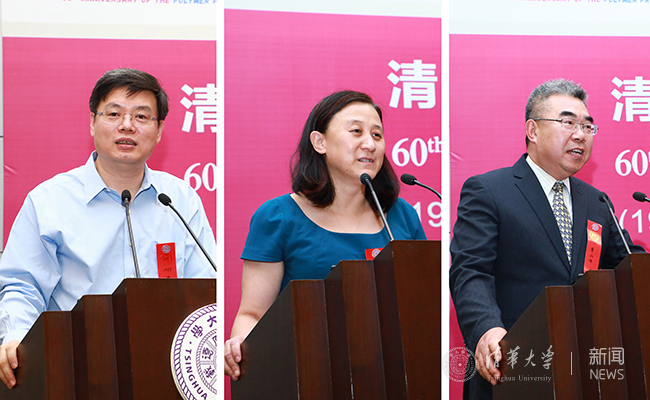 兄弟院系代表、化学系高分子所所长刘冬生教授和高分子所老教师代表周其庠教授发言,表达了对高分子专业的美好祝愿。1988级系友、中国石油天然气集团公司副总经理覃伟中,1987级系友、埃克森美孚研究工程公司杰出研究员张蕾以及1983级系友、《博览群书》杂志社社长董山峰先后发言,共同表达对母系高分子专业成立60周年的祝贺,回顾了在清华求学期间的成长经历,分享了对高分子专业和行业的认识,鼓励年轻学子勇于创新、开拓进取。