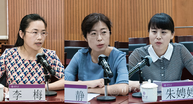 核研院李梅、组织部梁静、饮食中心朱娉婷三位老师结合本职工作,交流了自己在清华多年工作中的事迹和体会。随后,参会获奖人员逐一发言,从不同角度交流了各自在工作中的感悟。