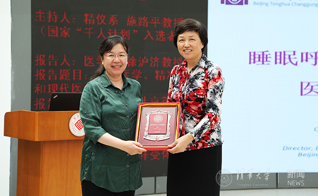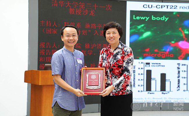 陈旭为尹航教授颁发教授沙龙纪念牌 实习记者 李派 摄