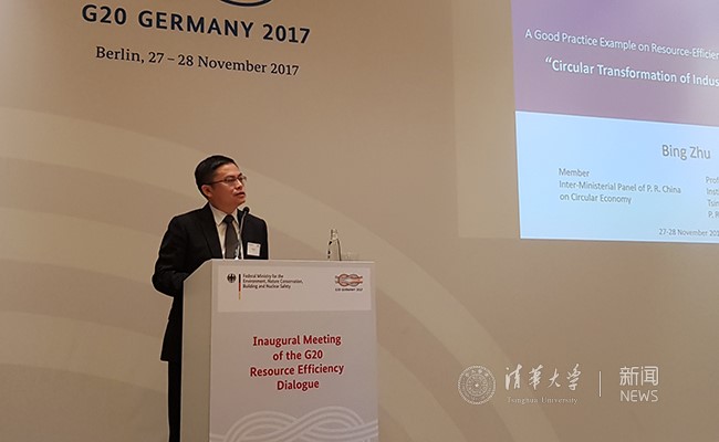 2017年11月,朱兵应邀在二十国集团资源效率对话会议做中国资源效率优良实践的报告。
