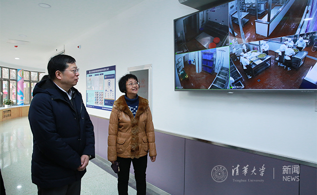 在第一站清华洁华幼儿园,邱勇调研了解了幼儿园的整体情况,并考察了改造后的食堂、户外运动区。在清华附小,邱勇一行考察了马约翰运动场、人文科学广场、丁香书苑等校园设施,听取了附小校长窦桂梅有关建筑布局、教育理念、课程发展等方面的情况汇报。