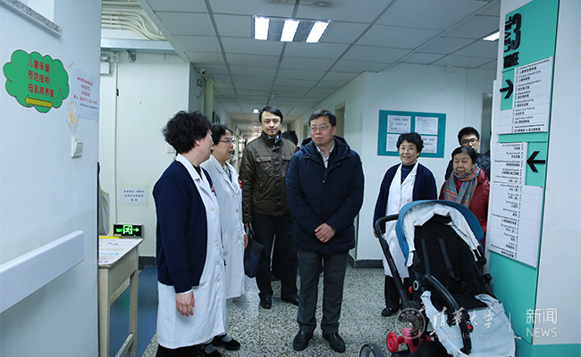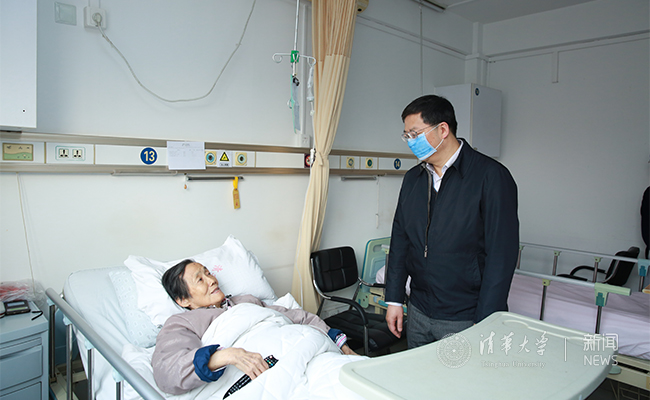 在校医院,邱勇考察了放射科、检验科、保健科等科室,详细了解了医院近年来的建设发展情况,并到病房看望退休女教工。