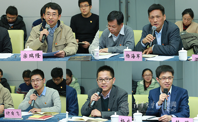 宗瑞隆、杨海军、计自飞、韩强、向宇(从左到右、从上到下)分别发言。