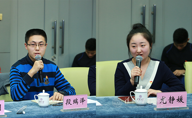 李路明和梁琼麟分别汇报两个院系党建情况。记者 苑洁 摄
