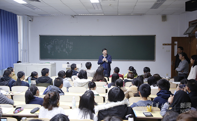 人文学院李守奎教授主讲“汉字与中国文化”课堂。记者 张宇 摄