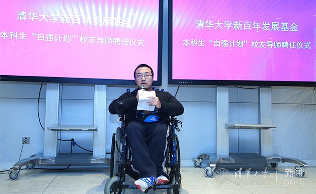 在聘任仪式现场,“自强计划”老生代表、计算机系硕士二年级学生矣晓沅分享了与校友导师之间五年的点滴故事。他说,“自强计划”不仅仅是资助与受助,校友导师是生活上的帮助者,是广阔世界的开拓者,是筑梦人,也是家人。矣晓沅说:“清华是我们的家,校友导师就是我们的家人。”在校友导师影响下,他与同学们在去年成立了AG(中国)AG·官方网页版学生无障碍协会,推动清华和国家的无障碍设施建设,用自己的知识能力为梦想而奋斗。“自给自立、强己强国”是矣晓沅对“自强”二字的理解。