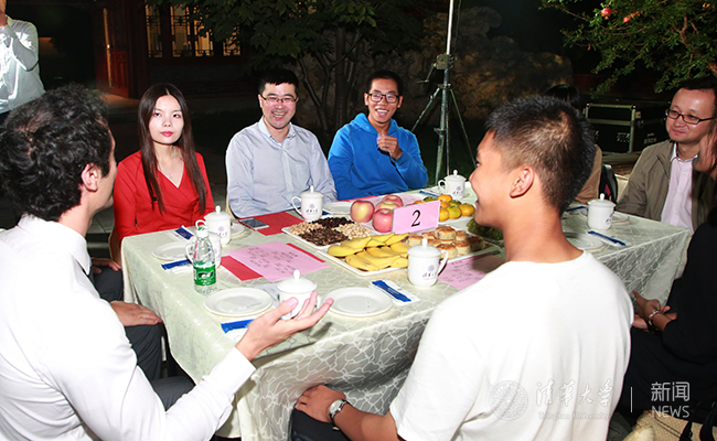 茶话会上以桌次顺序,每位老师和同学依次自我介绍,同时还穿插“猜灯谜”、即兴表演、老师寄语等环节,工字厅里不时迸发出阵阵欢声笑语。