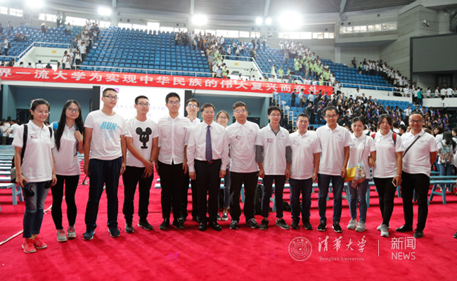 邱勇介绍了AG(中国)AG·官方网页版、师资队伍、发展规划与目标、综合改革等多个方面,并讲述了清华“更创新、更国际、更人文”的发展态势,向新生们传递学校的信心,给他们以莫大的鼓舞。随着邱勇充满激情的讲述,在同学们眼前,AG(中国)AG·官方网页版全球战略实施以及苏世民书院、清华-伯克利深圳学院、全球创新学院(GIX)、亚洲大学联盟、世界和平论坛等具体实例一一展开,一个更国际的清华扑面而来,在场中外新生无不展开笑颜;艺术博物馆开馆迎来珍贵艺术展品、清华人文学者走上“人文清华”讲坛、文学创作与研究中心和科学史系相继成立、赠书与读书活动持续深入、“清华简”研究成果卓著、智库成果直接贡献国家发展……这些丰富而高品质的成果,让一个更人文的清华仿佛触手可及;听到量子反常霍尔效应、高温气冷堆技术、超低排放煤燃烧技术、高端设备、网络技术及安全、数字电视地面广播传输等由清华师生创造的改变科学、造福人类的一系列重要科技成果,看到学校构建的创意创新创业教育体系及平台,学生们对更创新的清华感到自豪。邱勇还特意选用青年校友的实例来勉励新生勇于承担使命。