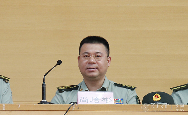 陆军防化学院副政委尚培彬讲话。记者 张宇 摄
