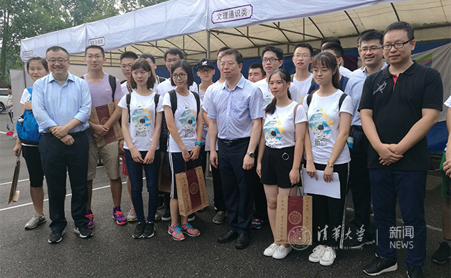 邱勇看望院系志愿者同学们。记者 刘蔚如 摄