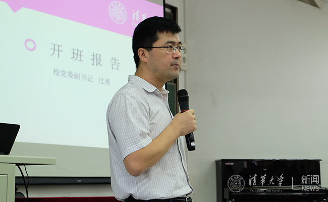 过勇为培训做开班报告。在报告中,他表述了清华政治辅导员工作在学校整体工作中的重要作用,并要求全体辅导员在具体工作中需要关注学生个性特点,主动因材施教,在培养学生独立性的同时增进自身素质提升,带动同学们一起营造良好校风学风。