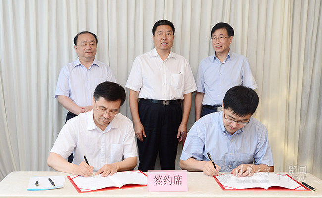 过勇(右)代表学校签署省校人才合作协议。