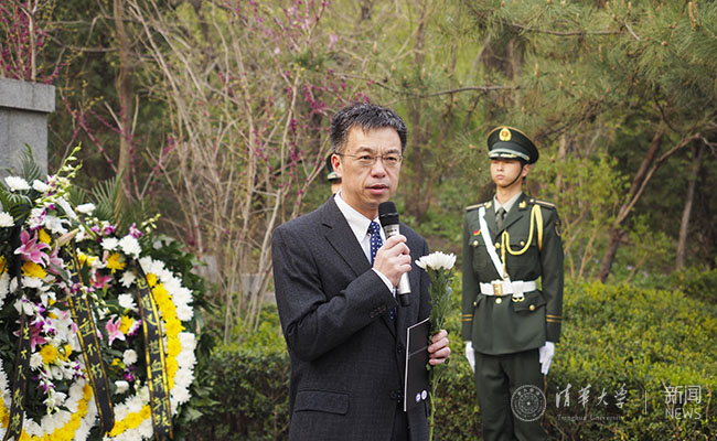 校党委副书记史宗恺和大家一起,共同缅怀了清华英烈在抗战年代救亡图存的可歌可泣的光辉历程,并在讲话中高度评价了清明时节祭奠先烈的活动的意义,号召大家自发前去纪念碑前献上花束。
