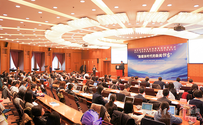 第四届范敬宜新闻教育奖颁奖仪式暨第二届总编与院长高层论坛。彭楚榕 摄