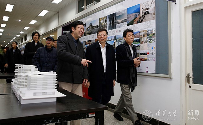 座谈前,邱勇来到建筑学院本科生设计专用教室、教学试验中心、英文硕士项目授课现场,调研学院在设计课教学、实验室建设、外聘设计导师等方面的情况。
