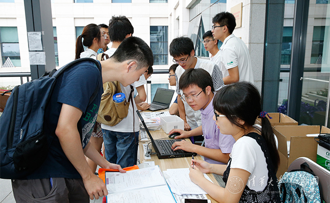 院系报到迎新。记者 张宇 摄