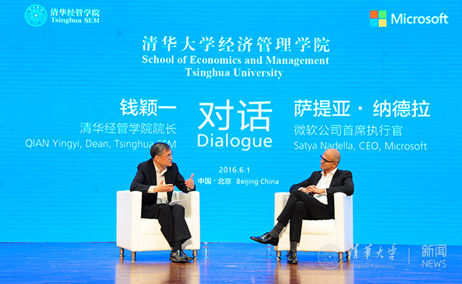 清华经管学院院长钱颖一教授对话学院顾问委员会委员、微软CEO萨提亚·纳德拉