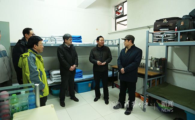 吉俊民带队到修缮中心、饮食中心、物业中心、接待中心的供暖、供电、食堂等保障场所,以及后勤员工的生活区和学校保安的宿舍区,慰问假期坚守工作岗位的后勤职工,并检查相关安全工作情况。