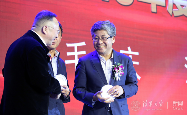 袁亚非为清华x-lab颁奖。左为袁亚非,右为白重恩。