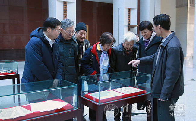 邱勇,陈旭及部分老教师代表参观专题展。记者 苑洁 摄