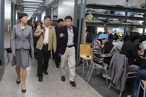 陈旭一行参观建筑设计课教学现场。记者 苑 洁 摄