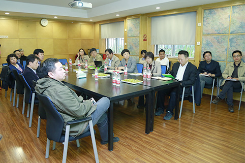 陈旭就建筑学院的学科建设、人才培养、师资队伍建设、人事制度改革和“三严三实”专题教育等方面问题,与学院领导班子成员和教师代表进行交流座谈。记者 苑 洁 摄