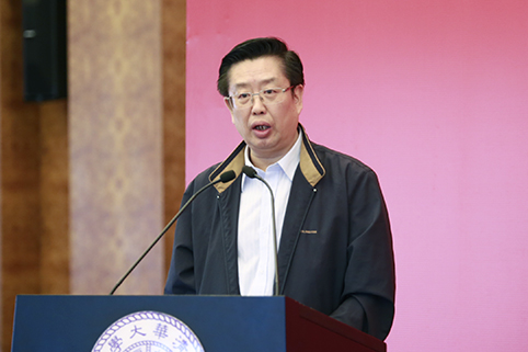 首都经济贸易大学党委书记柯文进代表党建研究课题承担单位作优秀成果交流。记者 张 宇 摄