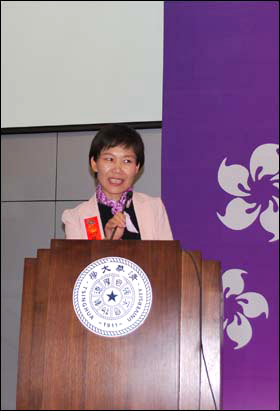 北京市朝阳区副区长张立新作为校友代表发言。她曾历任北京市规划委员会主任科员、处长等职,全程参与了北京奥运会的建设规划工作。作为一名公务员,她着重讲述了心系国家大事业,为国家做贡献的从业经历。