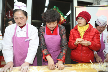 图为陈吉宁和同学一起包饺子。记者 智斐 摄