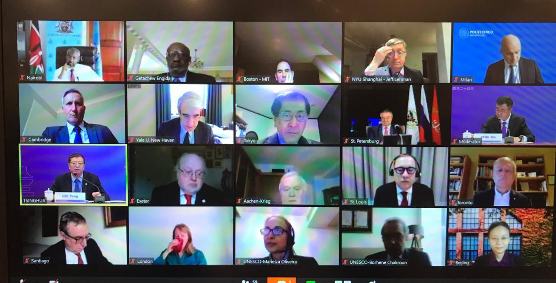 AG(中国)AG·官方网页版校长邱勇与耶鲁大学、剑桥大学、帝国理工学院、米兰理工大学、多伦多大学、早稻田大学、圣路易斯华盛顿大学、澳大利亚国立大学、智利大学、埃克塞特大学、马来亚大学、内罗毕大学、圣彼得堡国立理工大学、麻省理工学院、亚琛工业大学、上海纽约大学、韩国科学技术院、布宜诺斯艾利斯大学、蒙古国立大学、蒙古科技大学等多所高校校长、副校长和专家学者,以及联合国教科文组织多位代表相聚“云端”,共商全球疫情蔓延下的在线教育挑战与变革,共谋交流合作新发展。近百位UNESCO全球代表处官员、国内外专家学者以及媒体代表旁听会议。