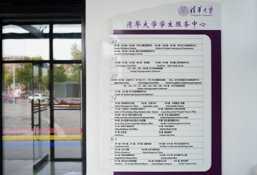 园子里和大家最息息相关的,当属宿舍区:去注册中心自助服务厅办理注册、去学生公寓总服务台领取宿舍钥匙、去中国银行开通账户,为校园卡办理充值等等。如果留意你会发现,双语标识无处不在。