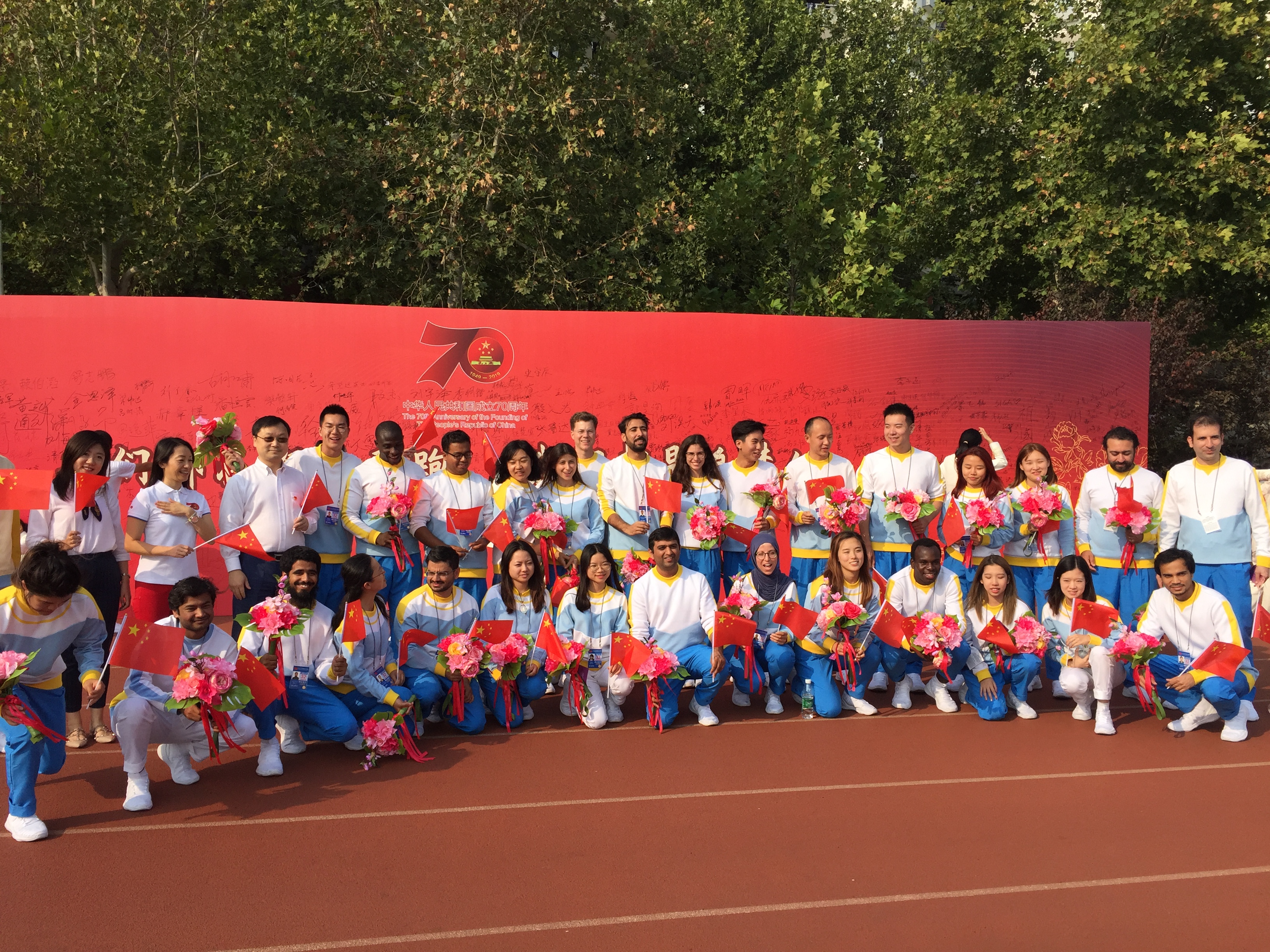 2019年10月,国际学生参加新中国成立70周年群众游行活动