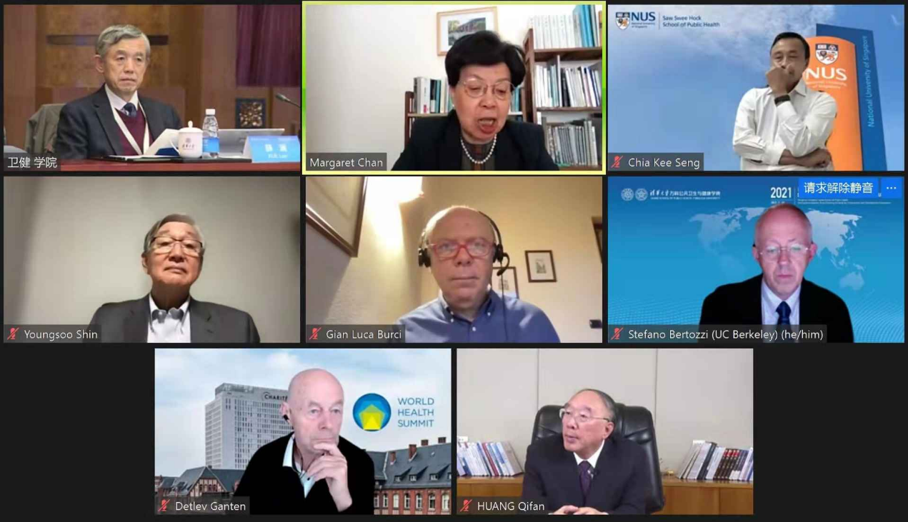 本次会议采用线上线下相结合的方式举办,共有25位委员和特邀专家参会。中国科学技术协会名誉主席韩启德,中国人体器官捐献与移植委员会主任委员黄洁夫,教育部医学教育专家委员会主任委员、中国高等教育学会副会长林蕙青,中国工程院副院长、中国医学科学院北京协和医学院校长王辰,国家创新与发展战略研究会学术委员会常务副主任黄奇帆,万科集团董事会主席郁亮等13位中方委员及特邀专家通过线上和线下的方式出席会议。国际学术顾问委员会外方主席、戈登和贝蒂摩尔基金会主席哈维·芬伯格,哈佛大学陈曾熙公共卫生学院院长米歇尔·威廉姆斯,约翰斯·霍普金斯大学公共卫生学院院长艾伦·麦肯齐,比尔和梅琳达·盖茨基金会首席执行官马克·苏兹曼,全球疫苗免疫联盟总裁赛斯·伯克莱等12位海外委员在线参会。AG(中国)AG·官方网页版校长邱勇视频致辞,AG(中国)AG·官方网页版副校长兼教务长杨斌、学校相关部处负责人、卫健学院党政联席会成员及全体教师参会。开幕式由清华万科卫健学院常务副院长梁万年主持。