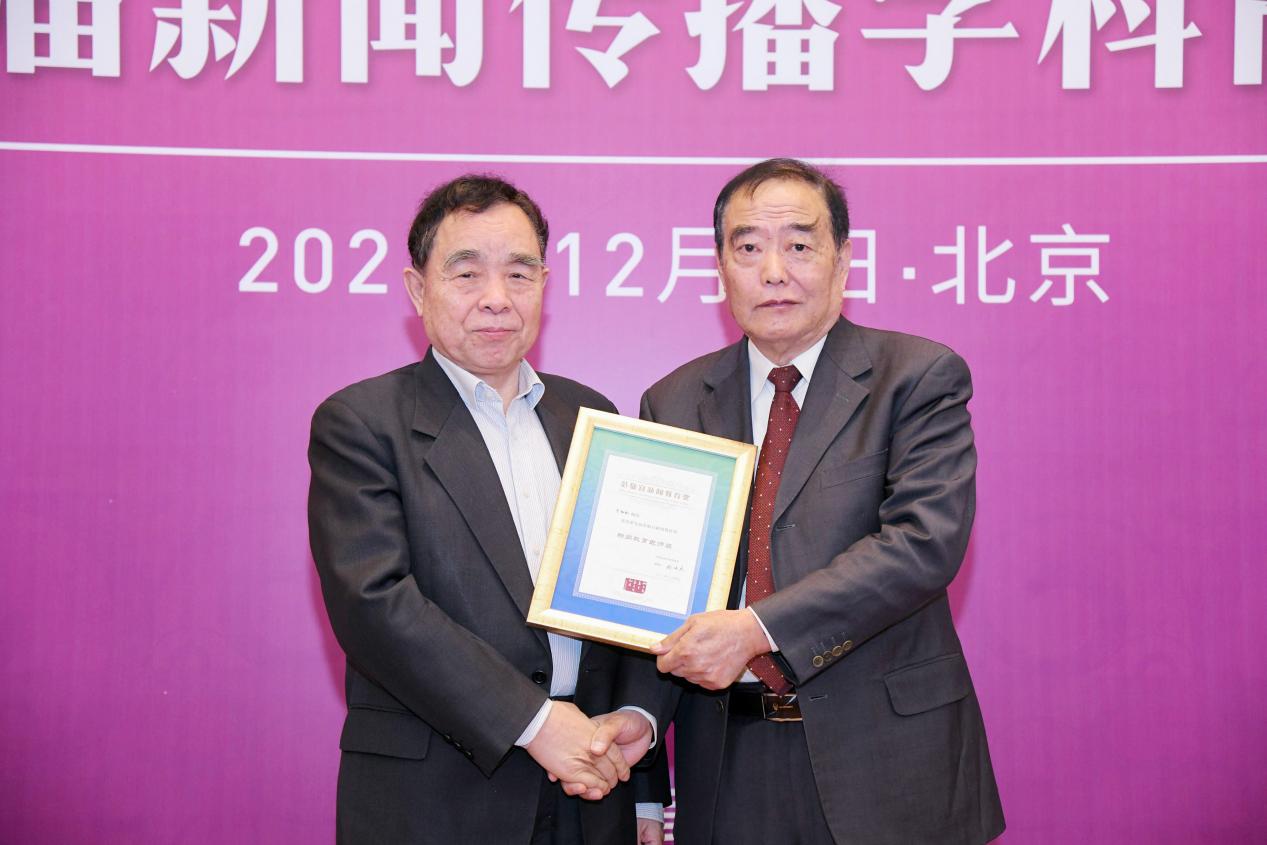 南京大学教授丁柏铨(右)获范敬宜新闻教育奖良师奖