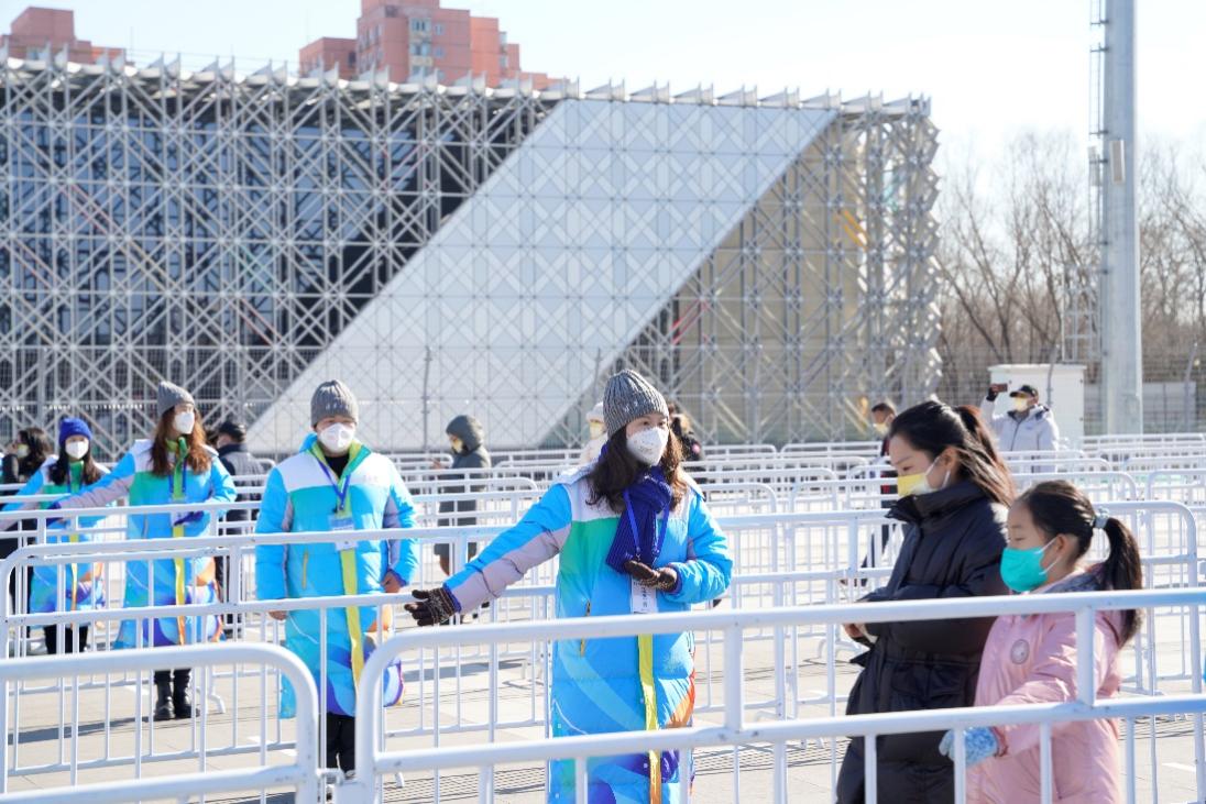 城市志愿者集结疏散近端由50名师生组成,是在国家体育场外围服务于冬奥会开、闭幕式观众近端集结疏散点的志愿者,负责冬奥会开、闭幕式驻华使团等国际友人的集结与疏散服务保障工作。国家体育场外的他们如同一朵朵用志愿热情燃烧的雪花,顺利完成观众服务、物资搬运、人员流线引导、入场散场秩序维护等任务,为冬奥会开幕式的圆满举办“保驾护航”。